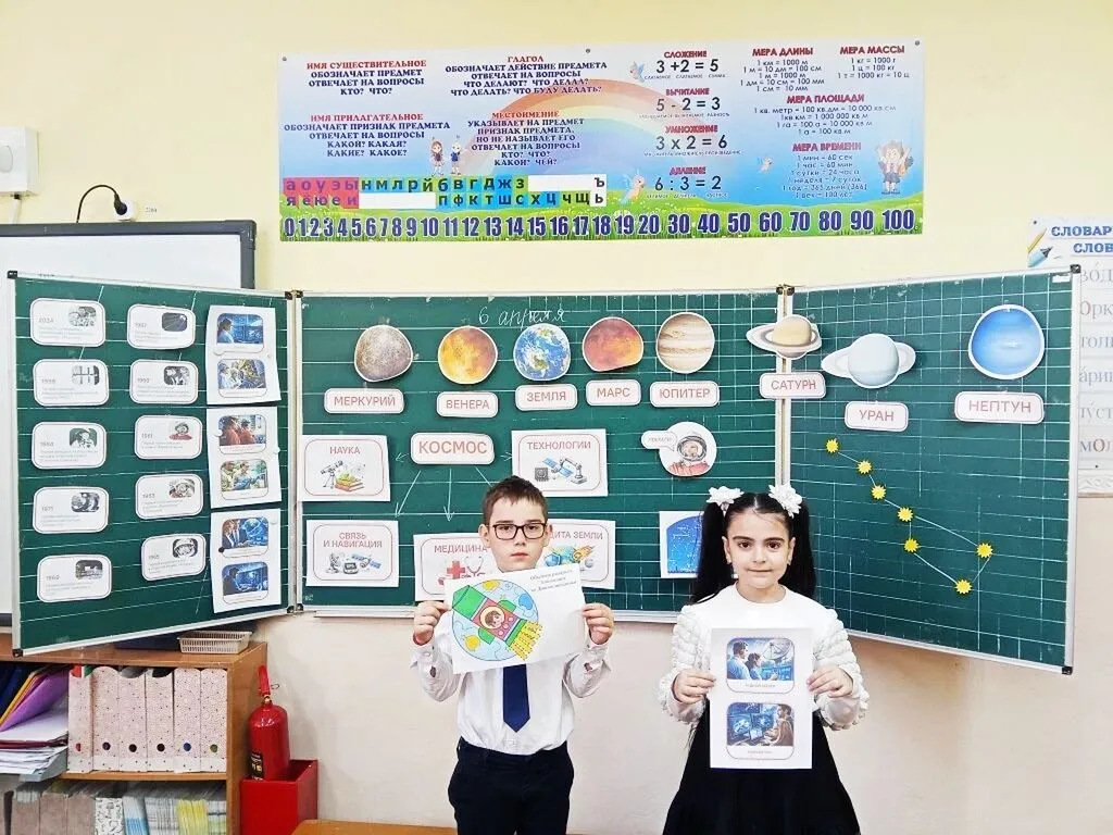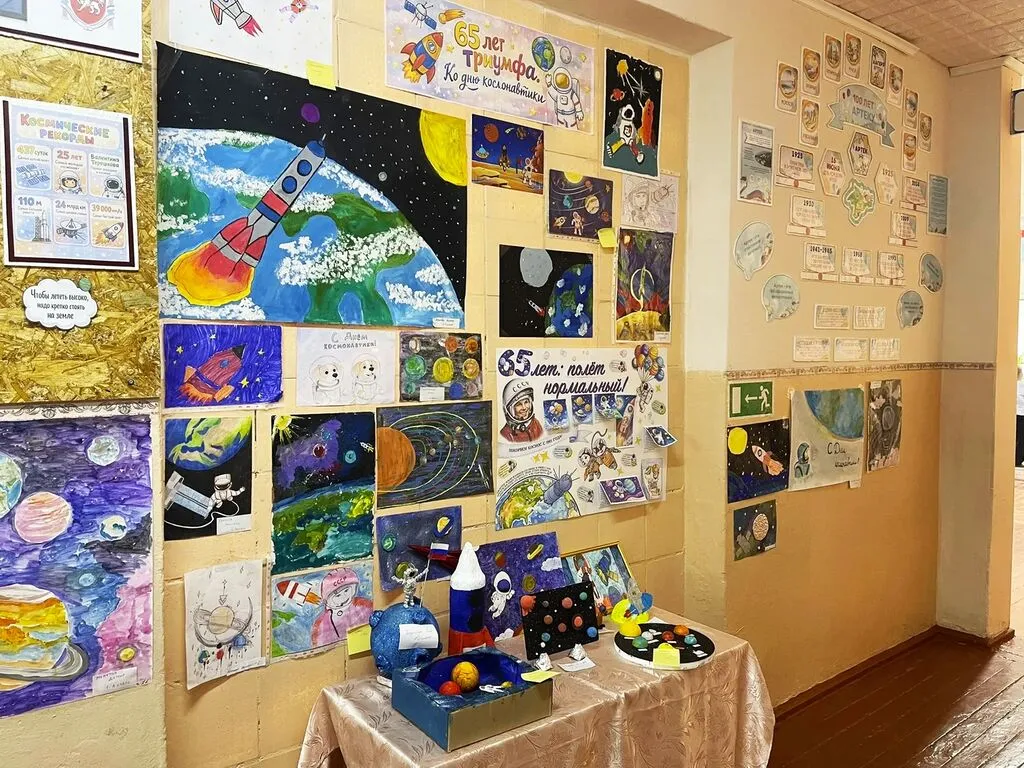 Неделя космоса охватила все параллели с 1 по 11 класс. Мероприятия сочетали историческую память (Ю.А.Гагарин, С.П.Королёв, 65 лет первого полёта человека в космос, 80 лет космической отрасли), актуальную науку (спутники, марсоходы) и творчество (рисунки, ракеты из трубочек, флешмоб). Фотовыставка «От Гагарина до тебя», праздничный флешмоб и Космодиктант стали центральными событиями для учащихся и педагогов. Выставка у библиотеки работала всю неделю и обновлялась новыми экспонатами.