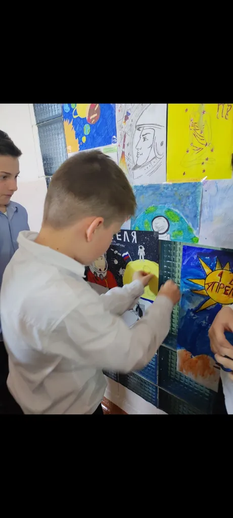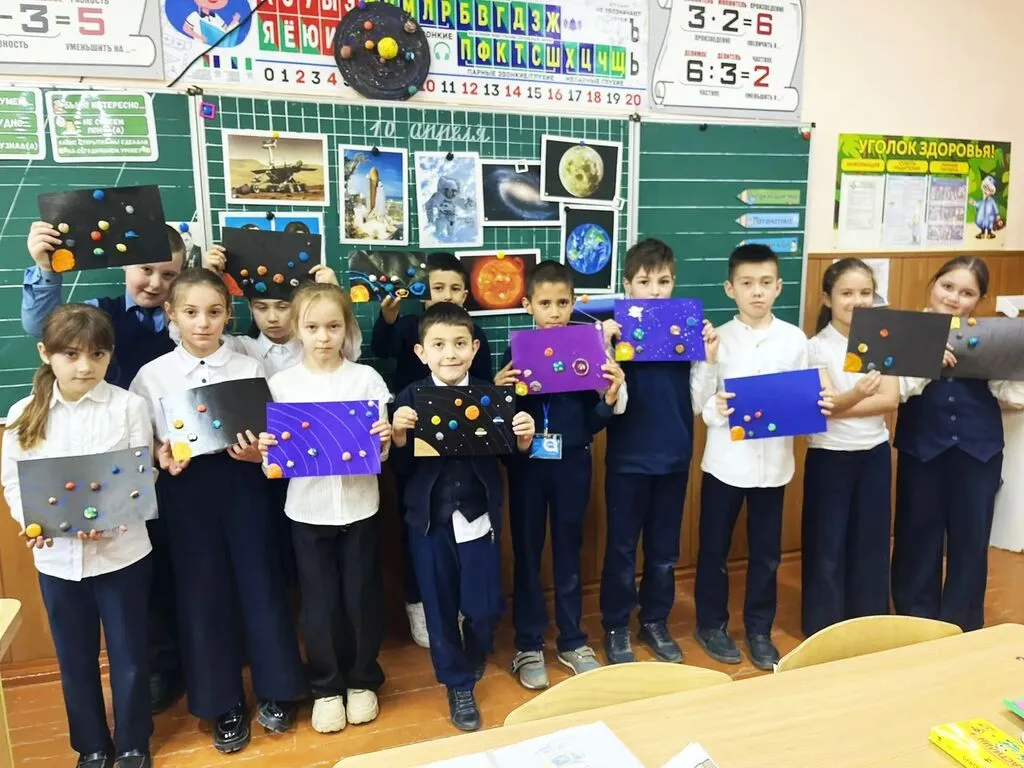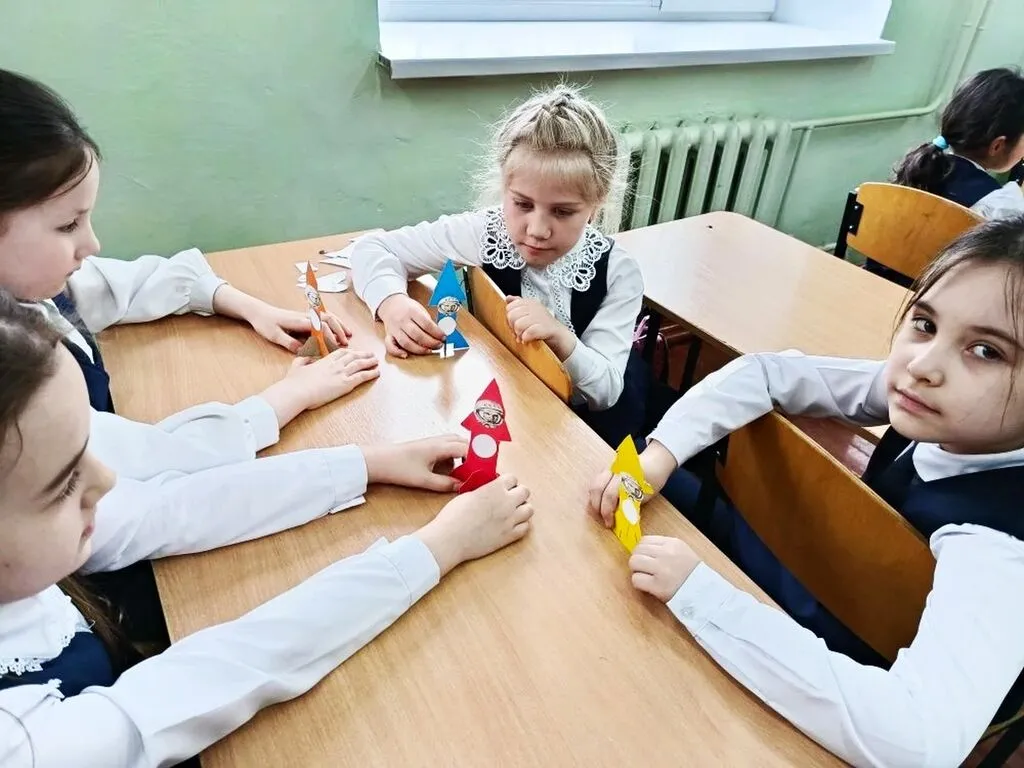 - В рамках гагаринских уроков младшие школьники создавали «магию своими руками» (простые космические опыты).