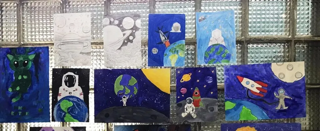 В среднем звене – пятиминутки «Достижения космических исследований» (орбитальные станции, марсоходы, телескопы). - Отдельный конкурс рисунков, плакатов, стенгазет «Путешествие в космос глазами детей».